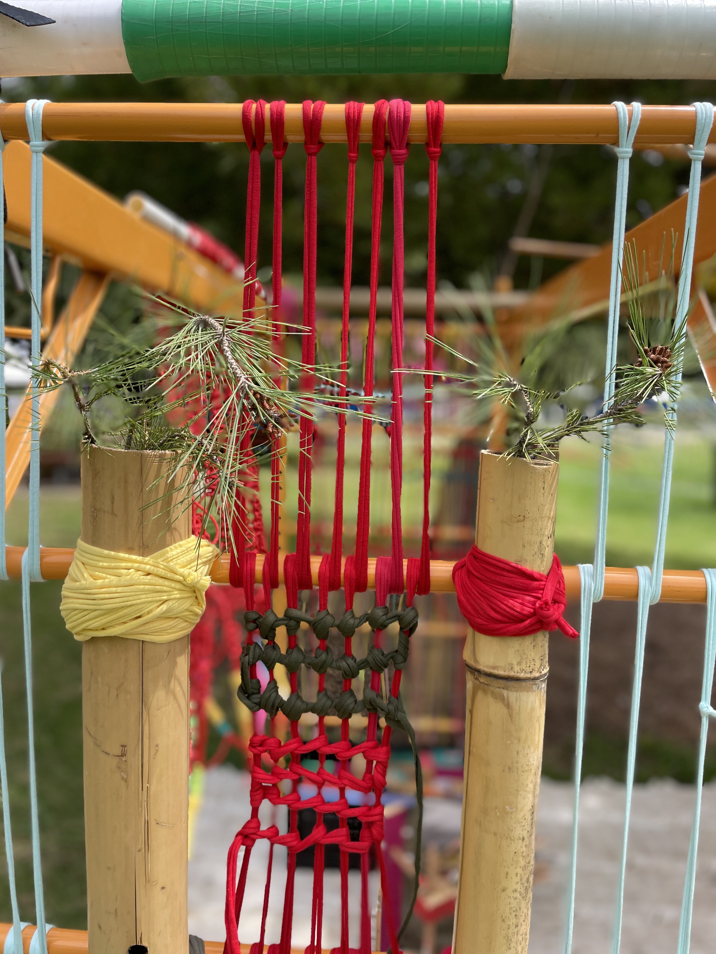 We offered 2 participatory areas: one is The Bamboo Loom: An evolving, large-scale collaborative weaving project that turns spectators into artists. And The Slow House: A curated environment for young audiences, prioritizing sensory play, architectural exploration, and slow-tech engagement.